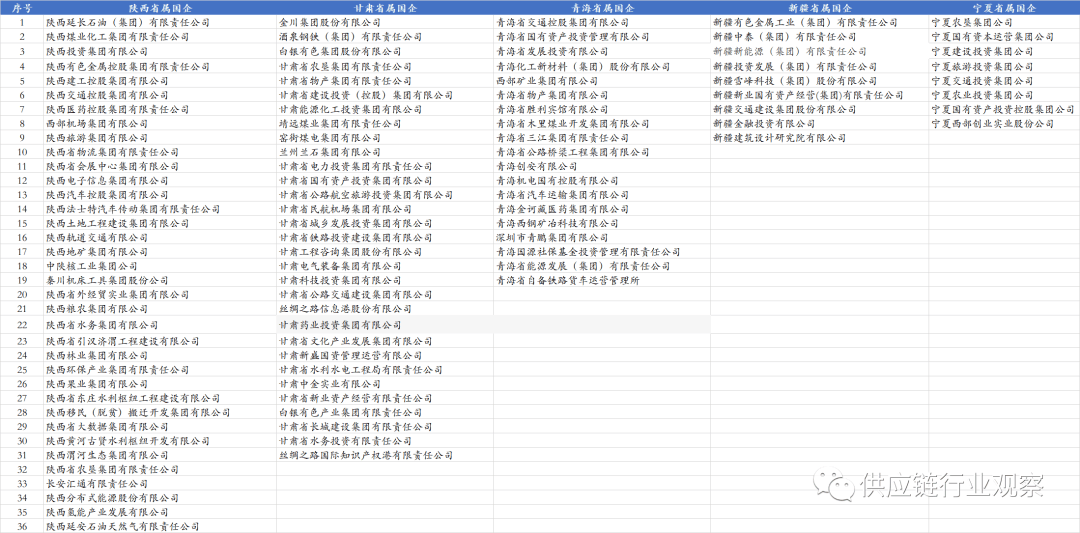 西北5省别离为陕西、甘肃、、新疆和青海。此中陕西数量最多36家、甘肃31家、青海19家、新疆9家、8家。